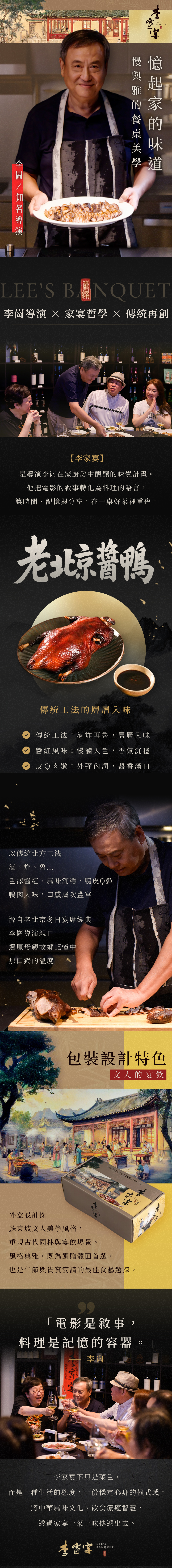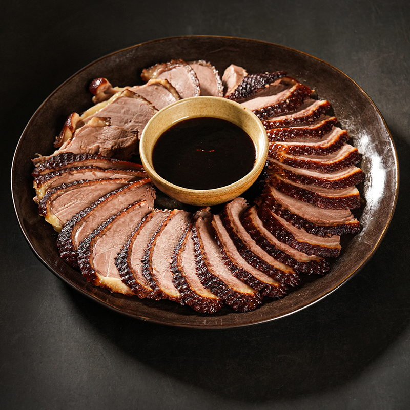 以傳統北方工法醃、炸、滷…,色澤醬紅、風味沉穩,鴨皮Q彈,鴨肉入味,口感層次豐富,源自老北京冬日宴席經典,李崗導演親自還原母親故鄉記憶中那口鍋的溫度。